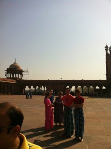 The first stop was Jama Masjid, the largest mosque in India in the heart of Old Delhi, which can hold 25,000 people in the courtyard. The red sandstone mixed with the white marble was very beautiful. Looking back on it (I’m writing this after the trip is done), it was just one of many amazingly beautiful buildings I saw, highlighted of course by the Taj Mahal. I was surprised at how few European looking people I saw in India (like the ones in the above right photo), even at the Taj Mahal.