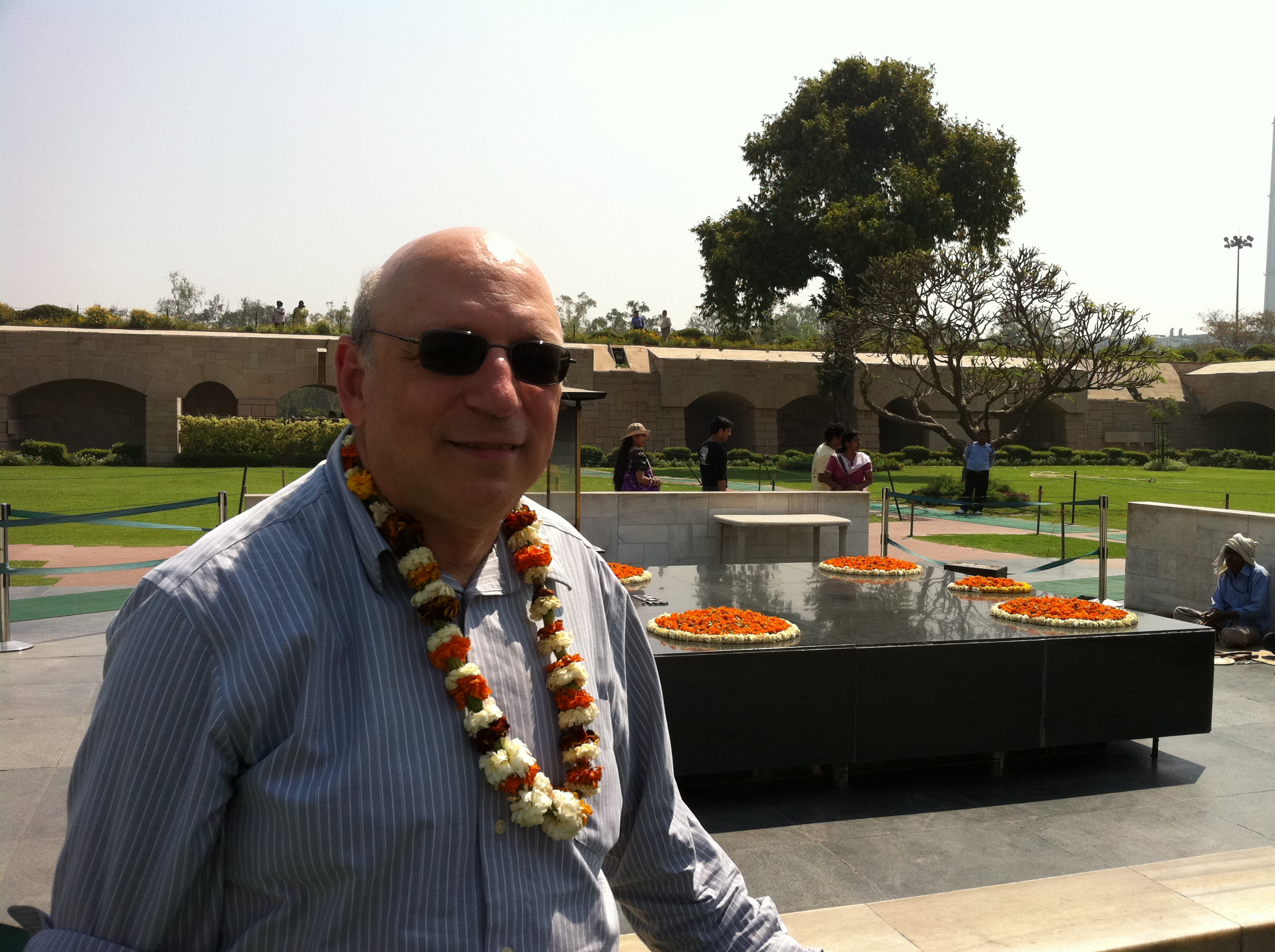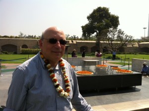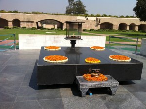 After the rickshaw ride, we got back in the car and drove to Raj Ghat, the cremation site of Mahatma Gandhi. This was a little emotional for me. Ghandi was one of the most important people in world history. He developed the philosophy of non-violent resistance to evil that was used by Martin Luther King and many others. He organized the successful resistance to British rule that began the freedom of dozens of countries from being controlled by empires.