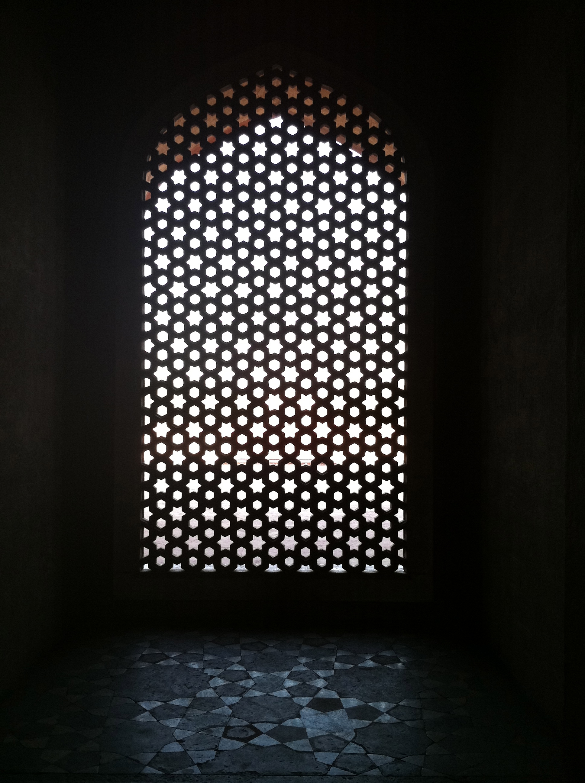 Two of maybe a dozen different geometrical screens inside the tomb building