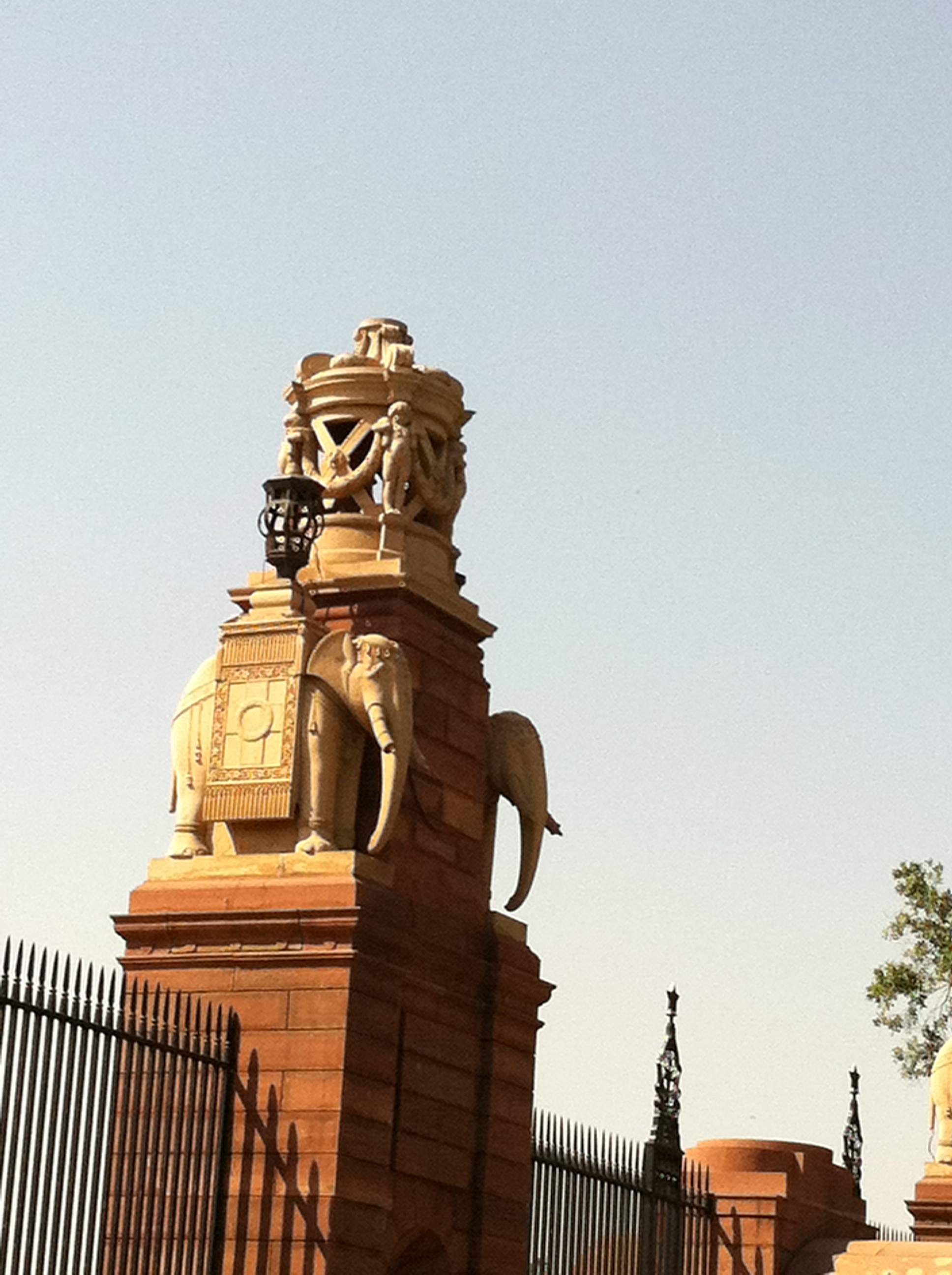 Real monkeys at the gate (left), elephants on the column (right)