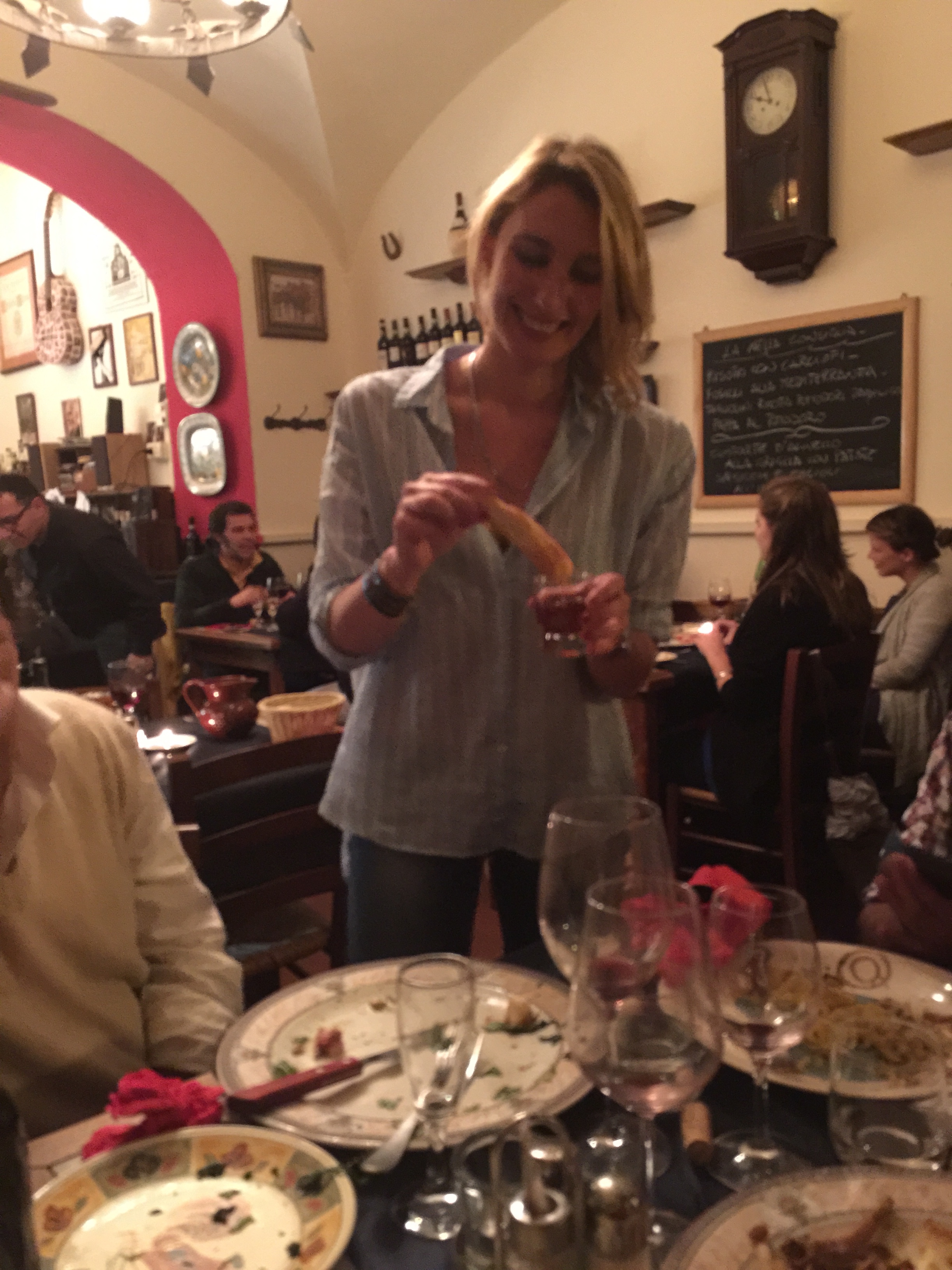 The French woman who sat next to me recommended I go to an area of Rome called Trastevere and to a restaurant called Ripa 12. Even though I was really tired and needed a break, I took a brief rest and then a taxi to that area. It was a really lively place, with a jazz band playing, lots of churches, and people everywhere (more Italian than international).