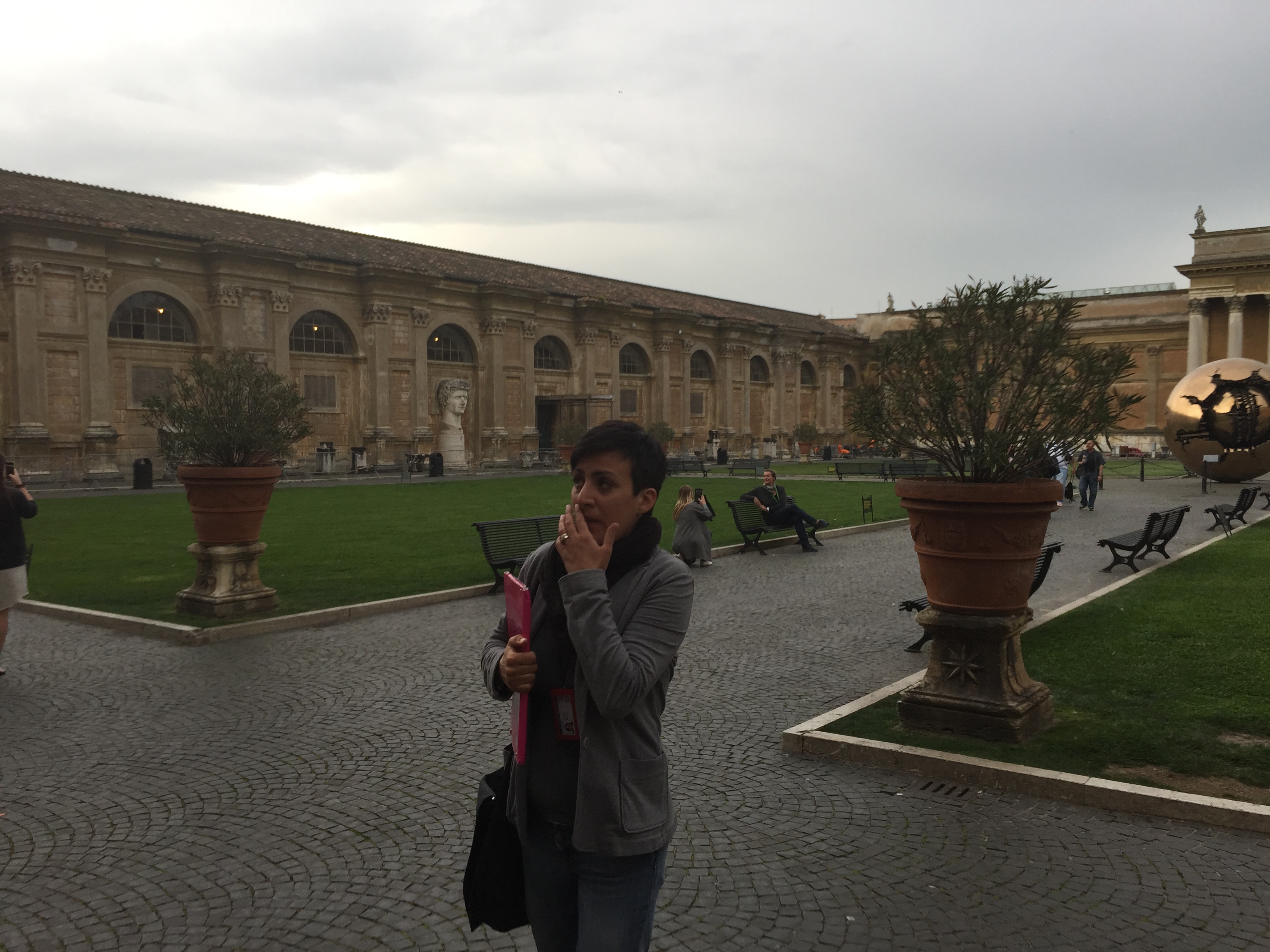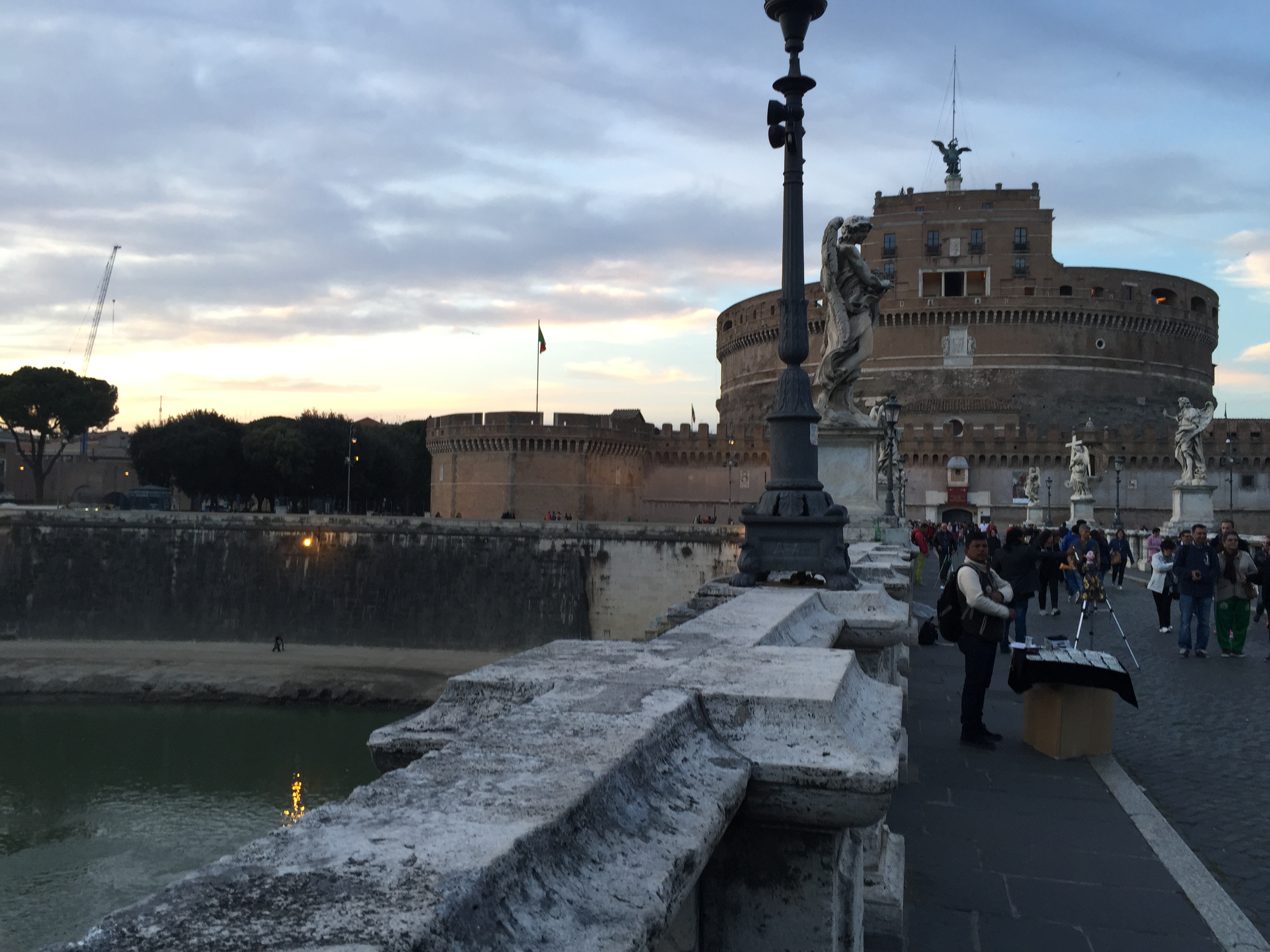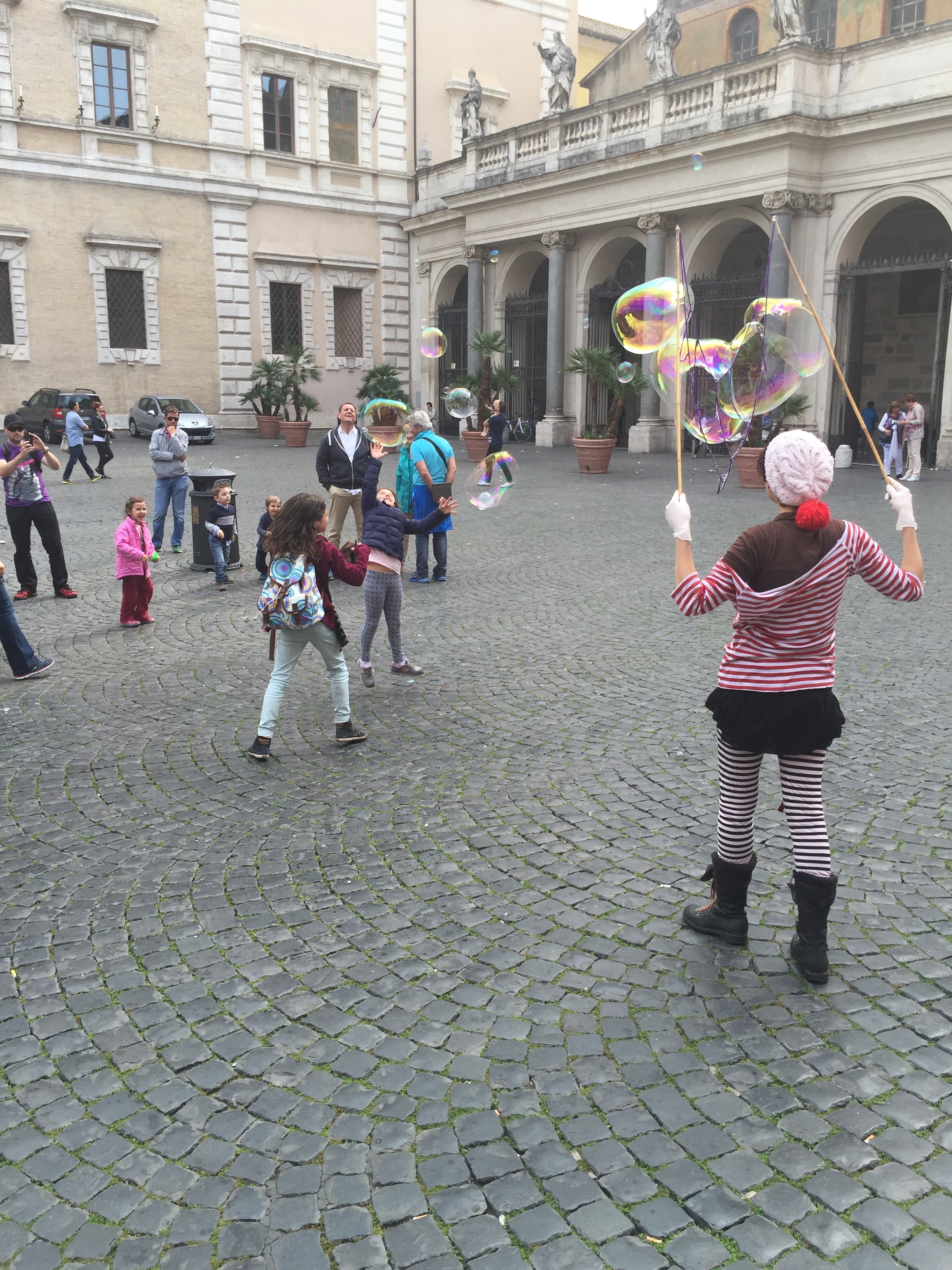 The Pope speaks from a window in St. Peter’s Square most Sundays at noon. I was told to get there early if I want to sit so I made sure to be there by 10 AM. I found a guard rail that had a direct view of the window for my 2 hour wait. The whole time I was there I was talking with people from all over. I spoke French with a Moroccan cook who works up in the Tyrollean Mountains of Italy. Another was a Sri Lankan who grew up in London but now lives in Spain and Germany. Then I met a Parisian woman who lives in Venice as a claims adjuster for car accidents (not in the city of Venice where there are no cars). I had a brief conversation in Russian with a Polish nun. If I had come later there would have been no place to sit and it was pleasant to sit out in the sun with all these people.