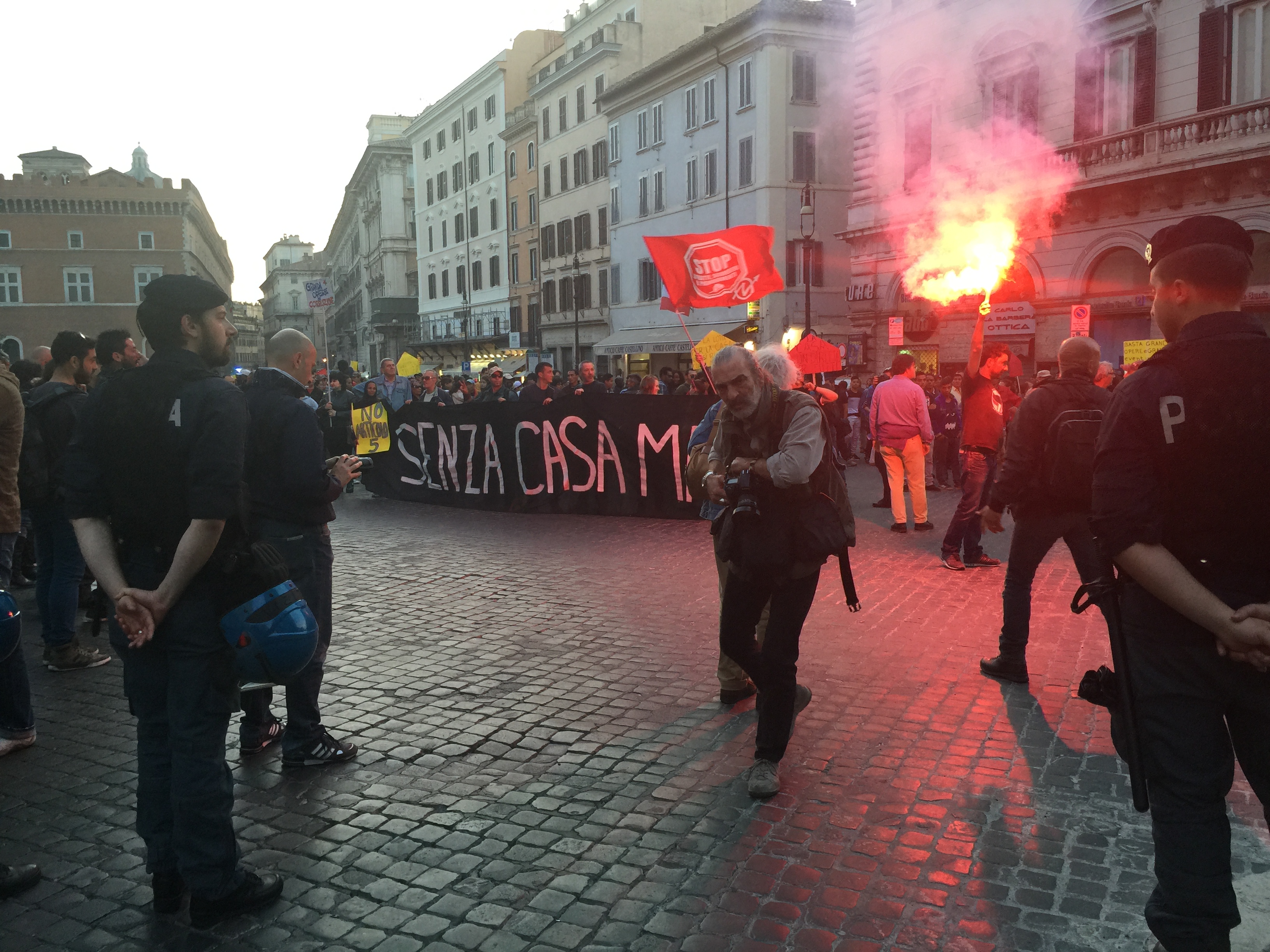 There’s no question that the Roman Coliseum belongs in the list of the top 7 man made wonders of the world. When I left, I was very surprised that all the traffic was gone from the large boulevard right outside the Coliseum. I looked down a street and saw thousands of people behind a large banner. I waited for them to start to pass by and asked a few people if they spoke English or French. Finally, I found a woman perhaps my age and asked her what the demonstration was for. She said it was for jobs and housing. I walked with her and a while and decided to join the demonstration. I’m for jobs and housing too.
