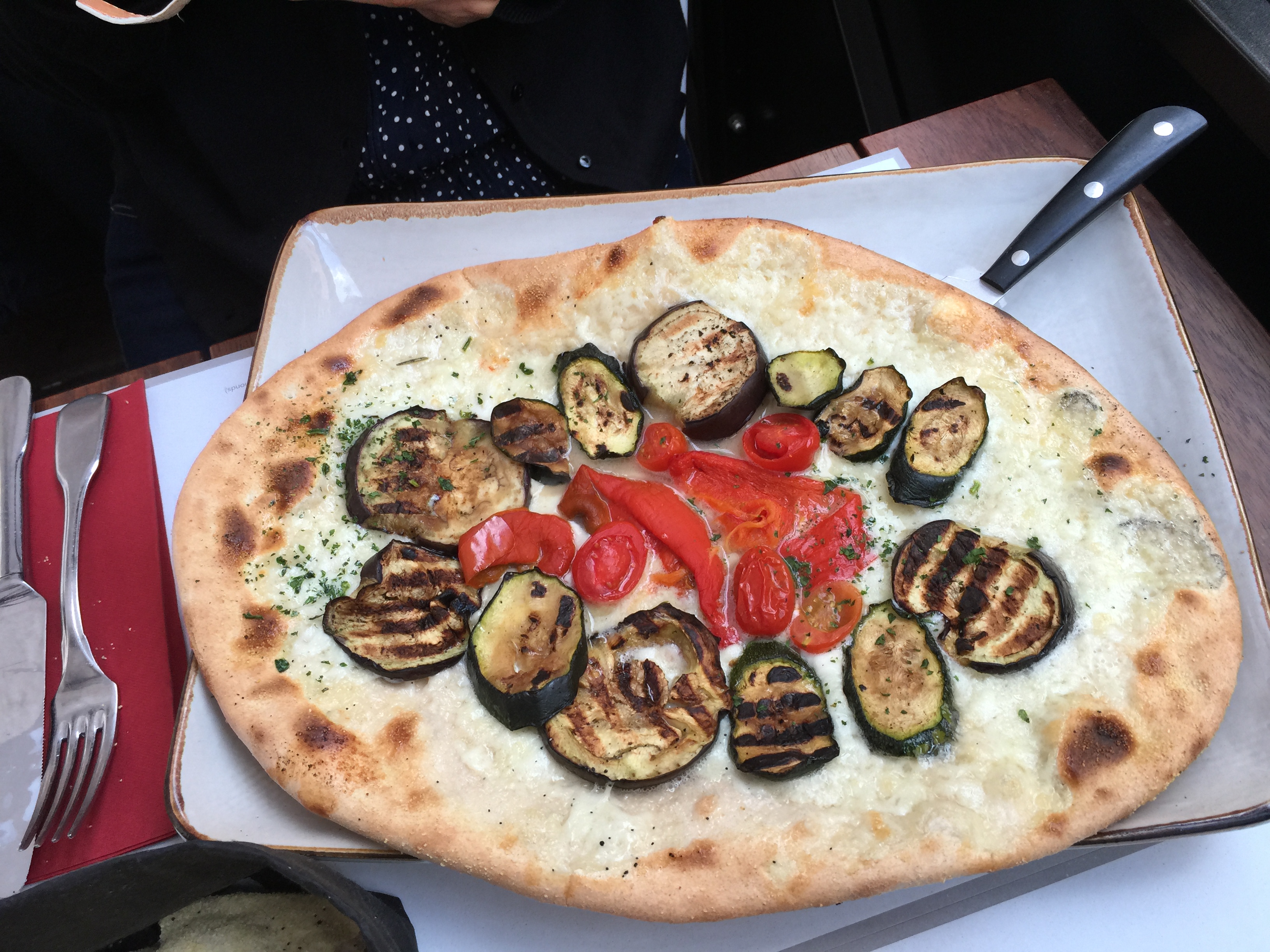 The Ripa 12 restaurant didn’t open until 7 and it was 5:30 or so. The good restaurants all open at 7. Suddenly I got a strong feeling of fatigue. I needed to eat soon and head back. I’d have to find an acceptable but not great restaurant. The one I found had the most important food I hadn’t eaten yet in Italy — artichokes. My father and I were fascinated with artichokes since we travelled in Italy in the 1960’s. I sometimes have one for snack. The one I ordered was swimming in butter as was the Saltibucco.