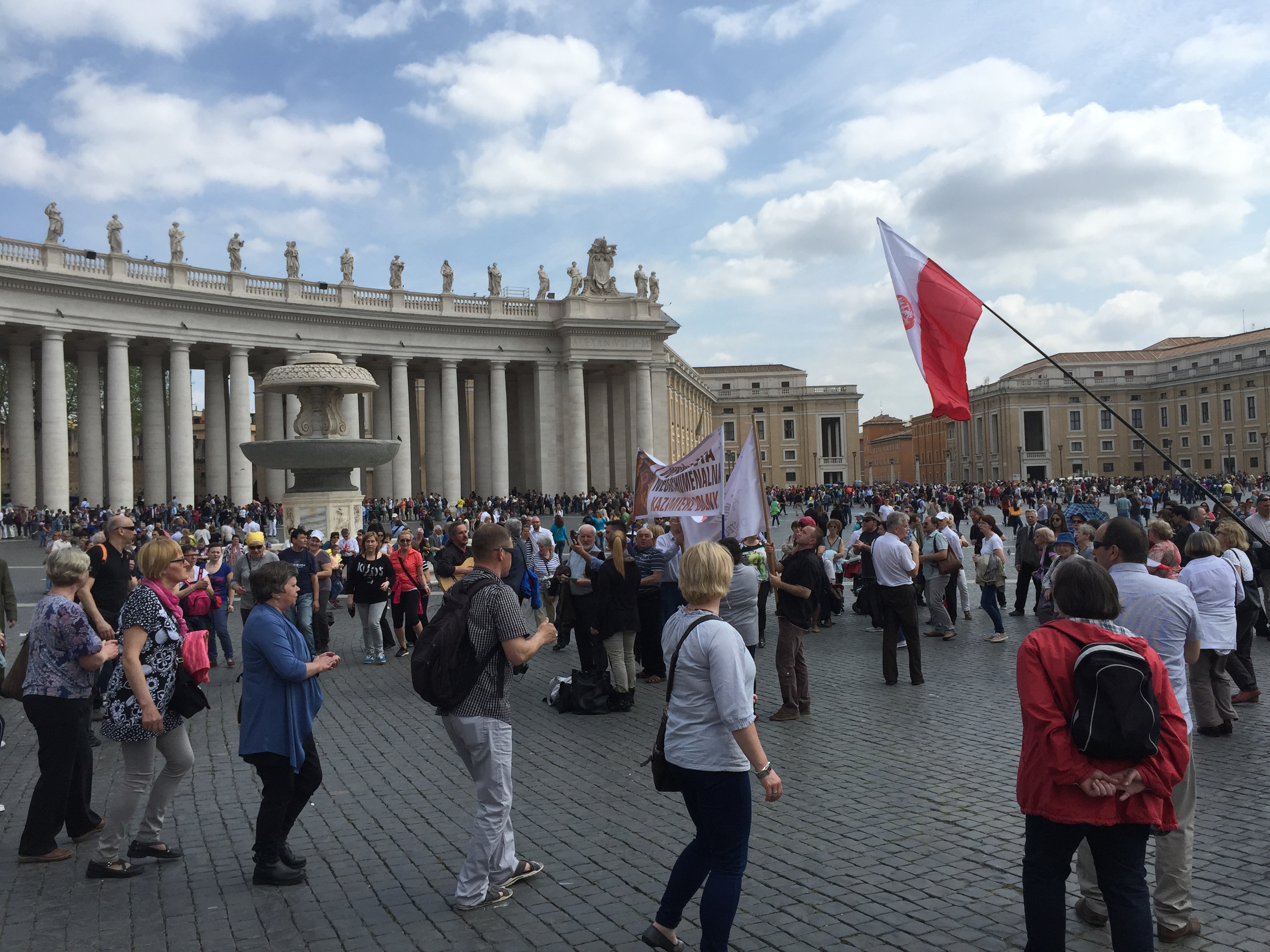 Here’s an article about what he said. He also gave the Regina Coeli, which I read replaces the Angeli until the Pentecost . You could feel his passion about the death of these 700 immigrants who died and also for all immigrants. He then gave a shout out to a dozen or so pilgrim groups, who all get a chance to yell when they’re called.