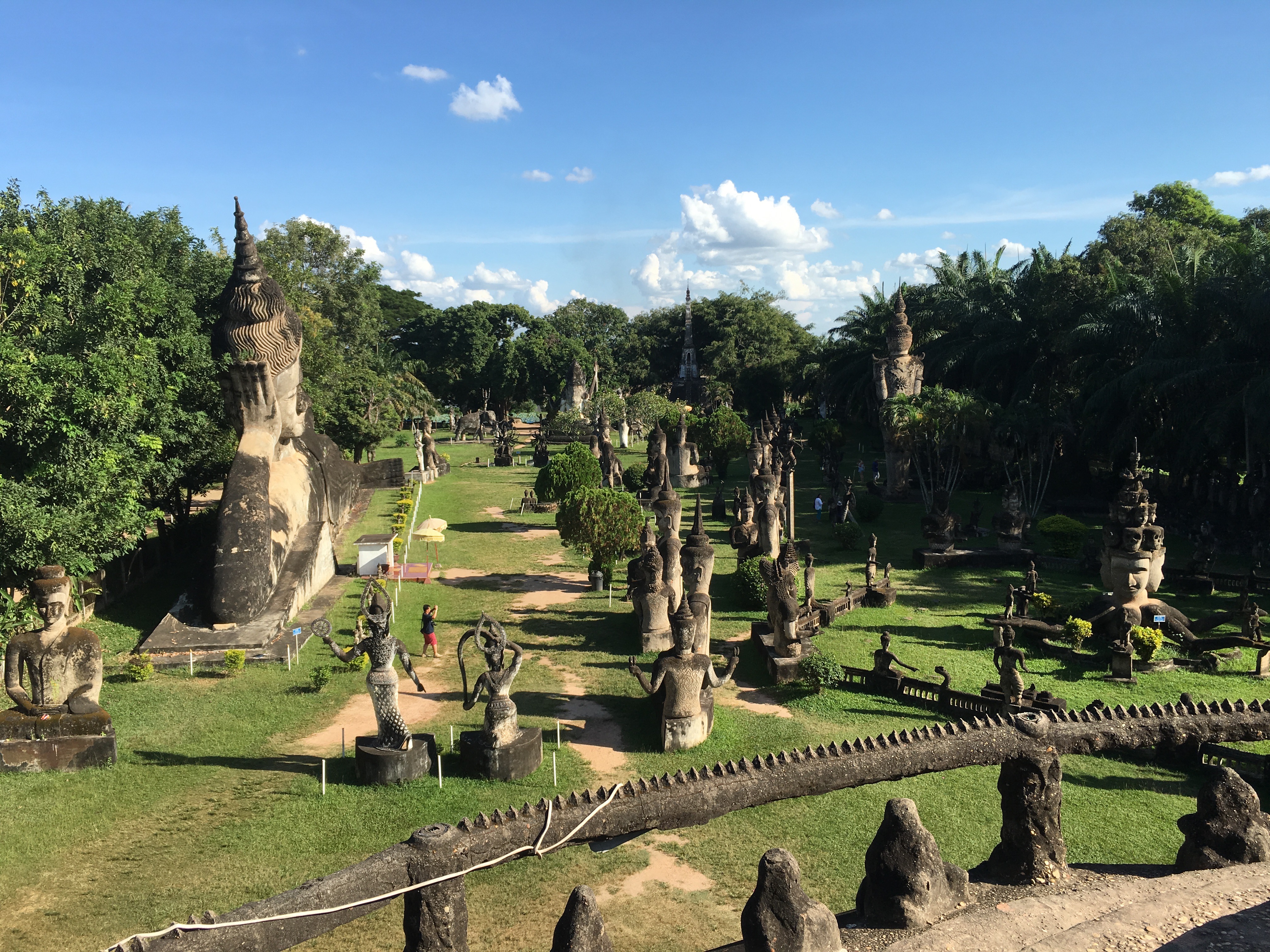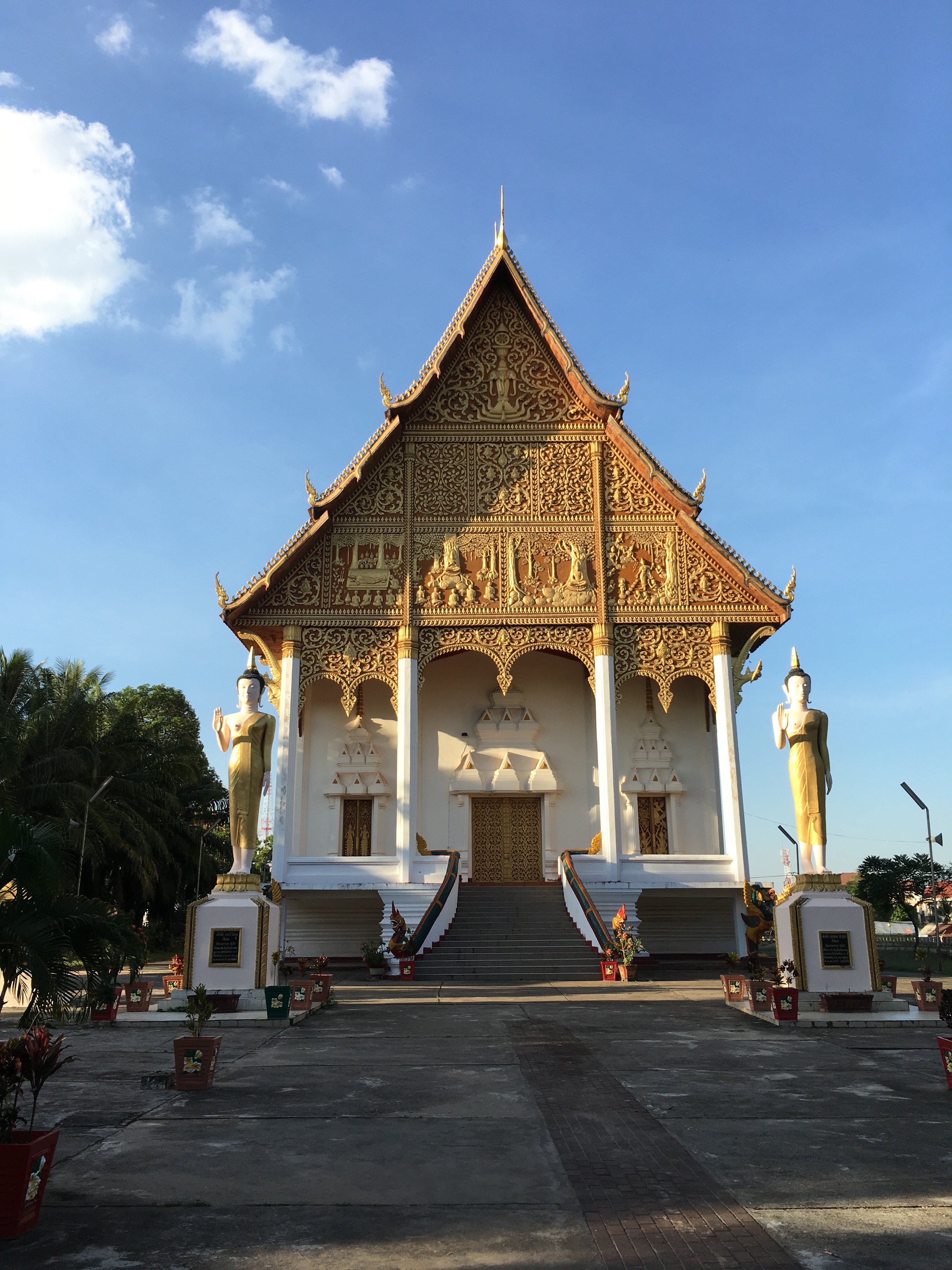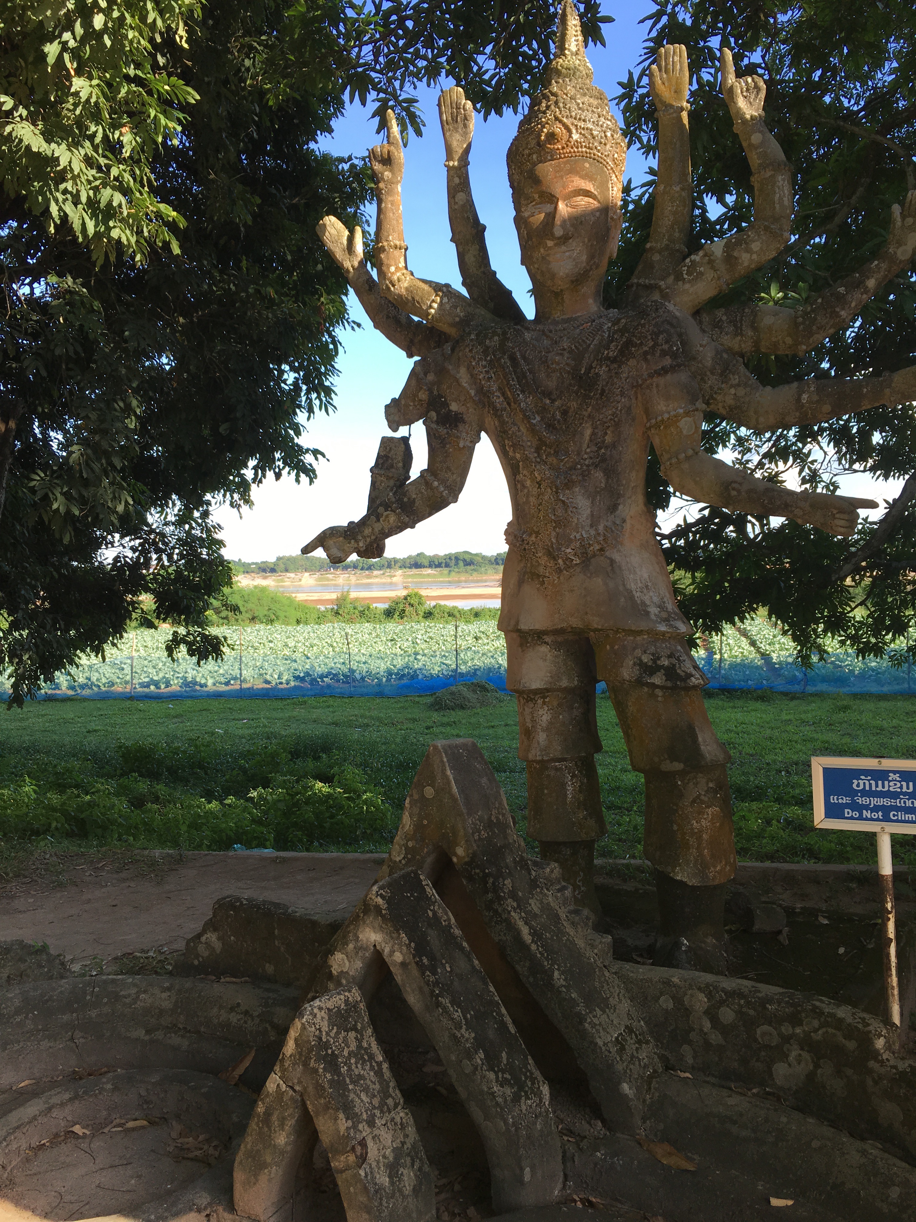 I wanted to see the Thai border so we started out going to the Friendship Bridge. After driving a while, I realized it was an hour each way, which didn’t seem like fun especially since I was starting to get a headache from the fumes. We turned around and went to the Laotian version of the Arc de Triomphe in Paris, called Patuxay.