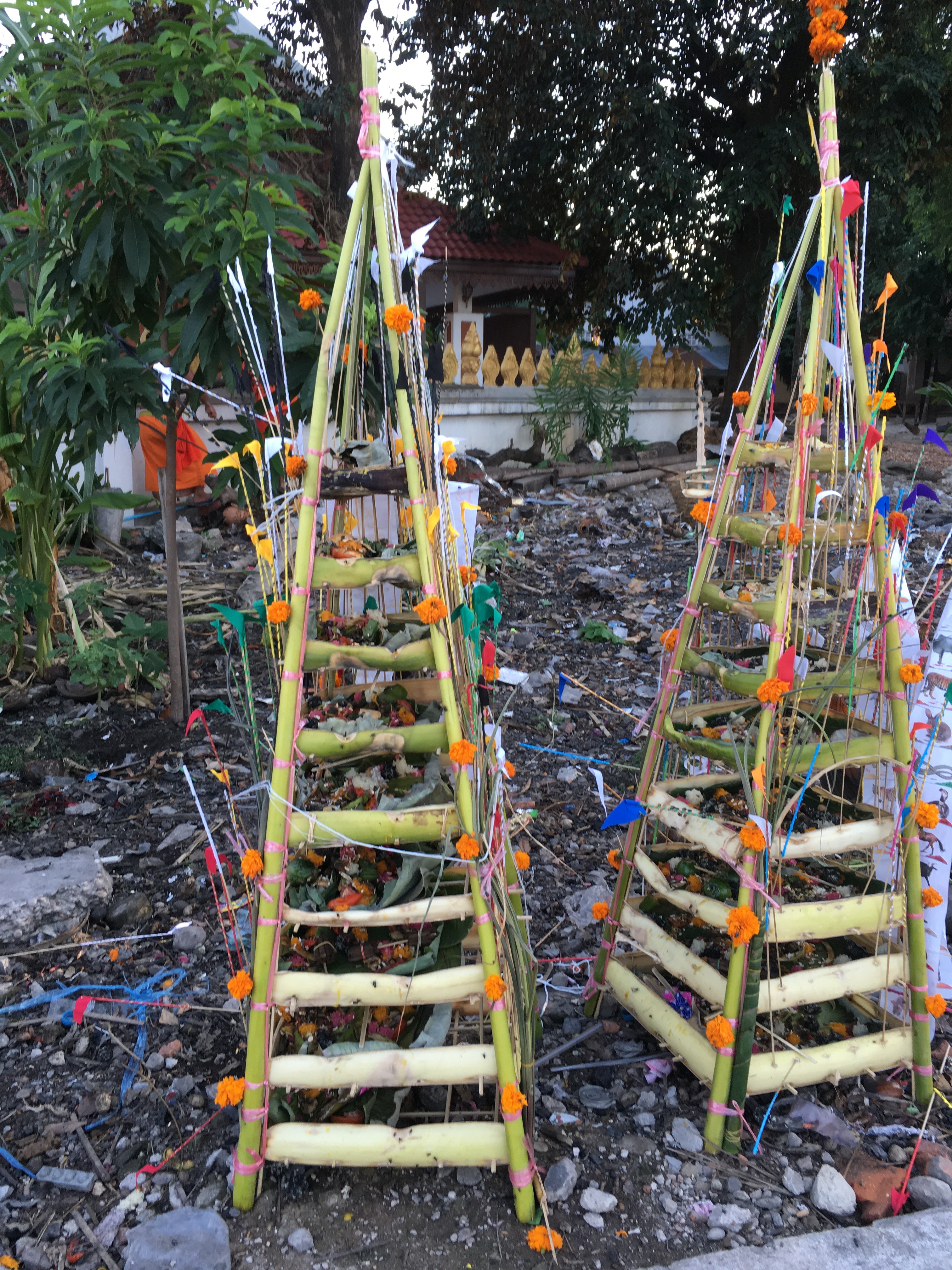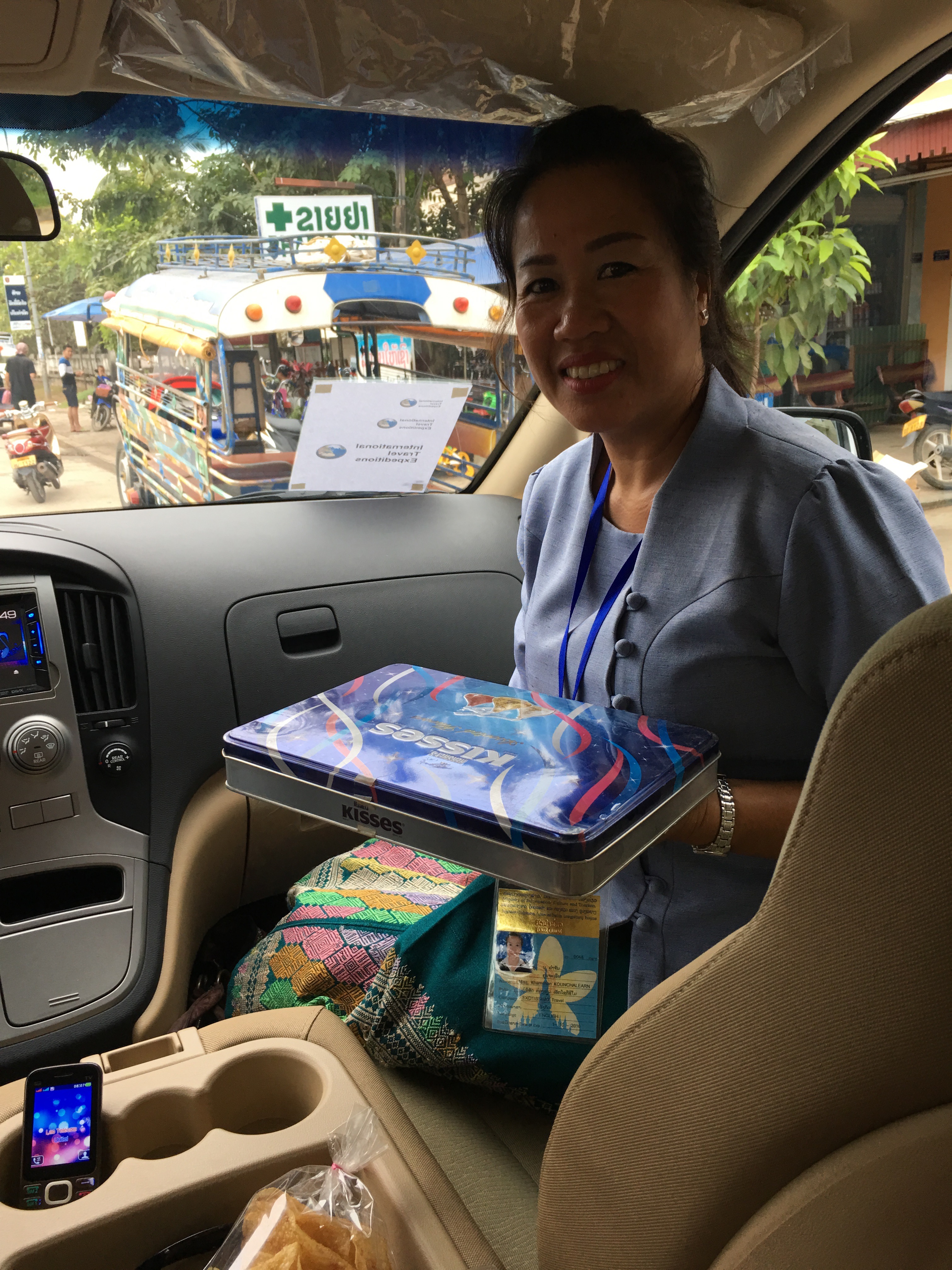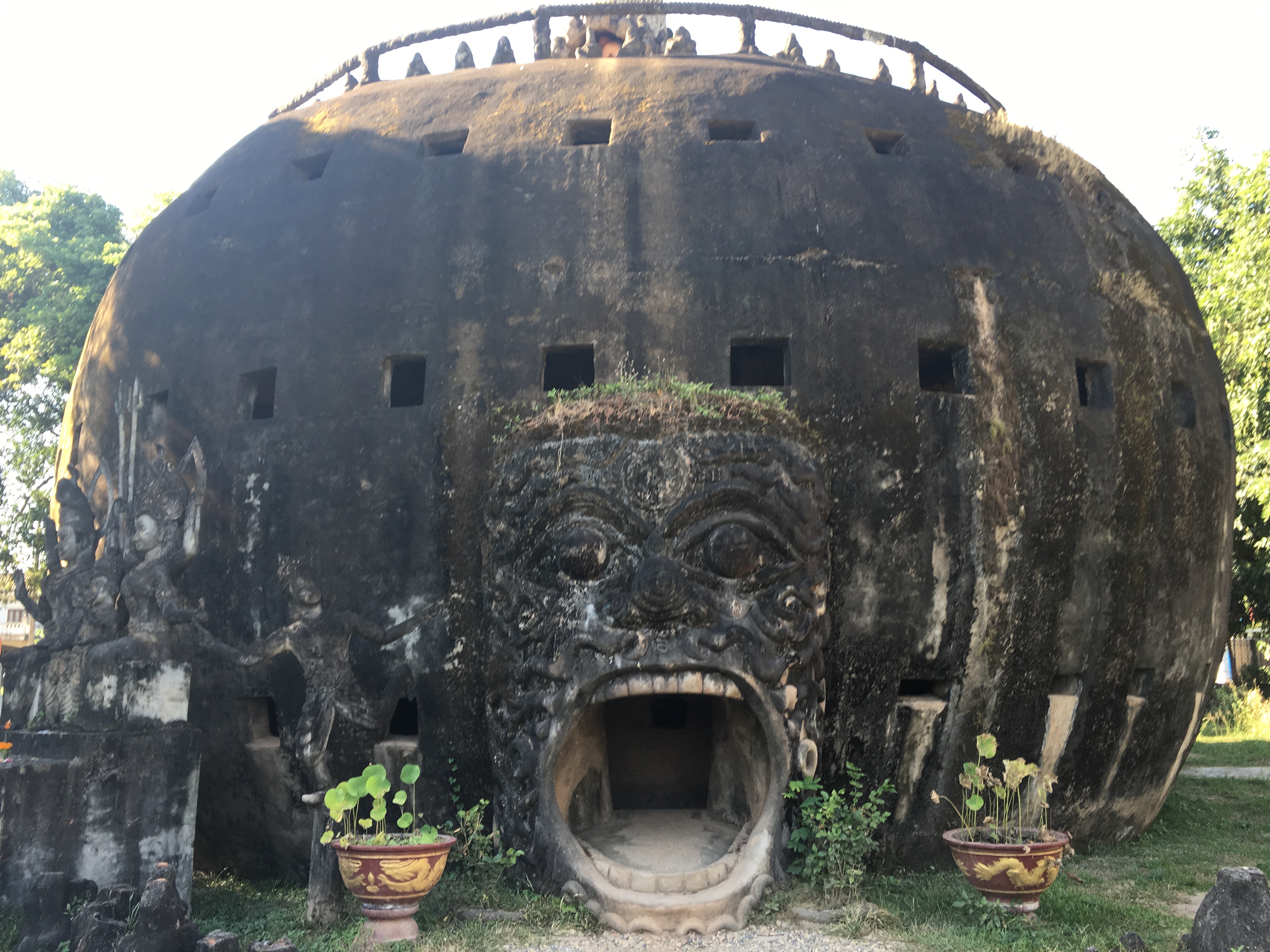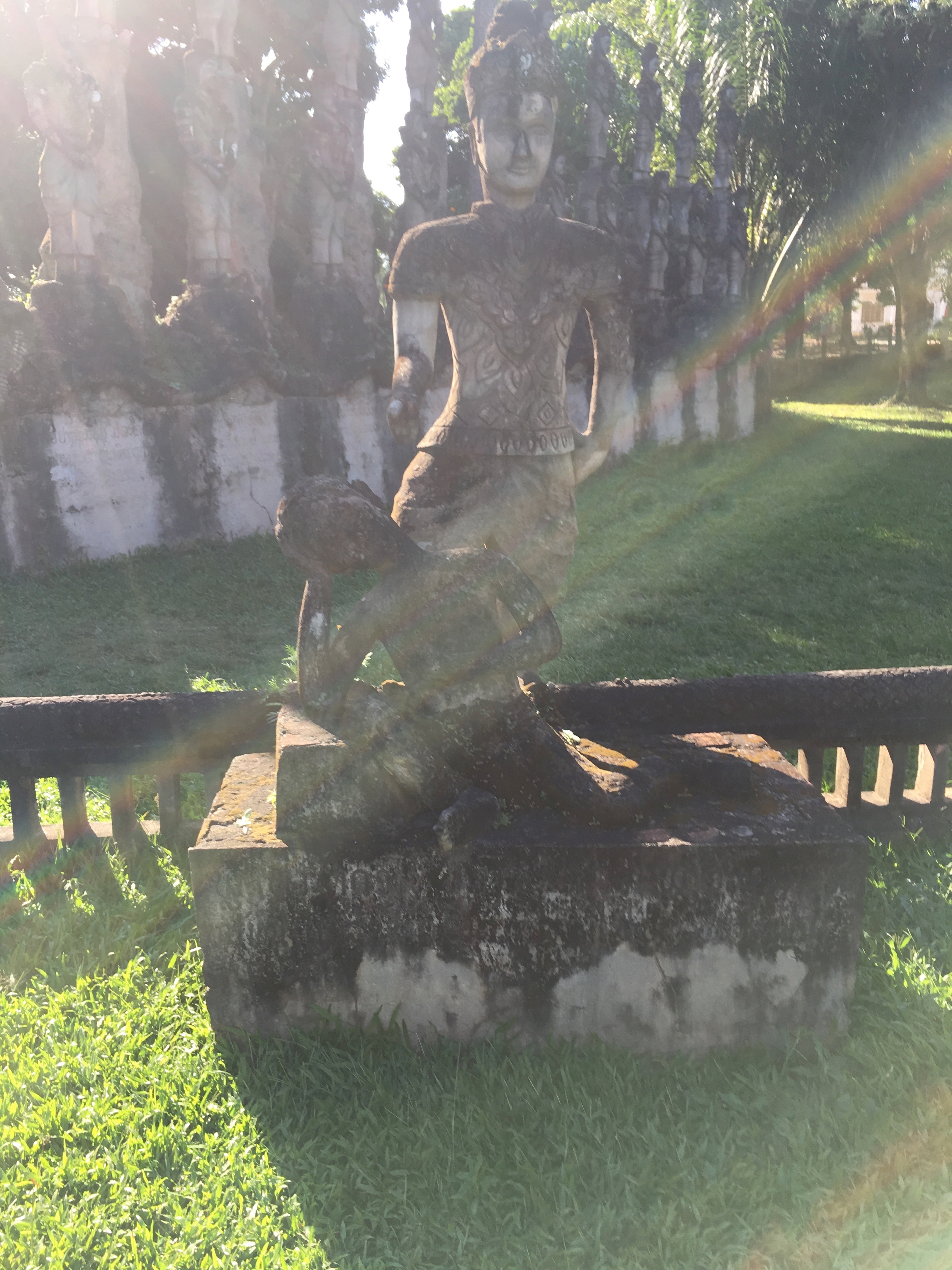 I wanted to see the Thai border so we started out going to the Friendship Bridge. After driving a while, I realized it was an hour each way, which didn’t seem like fun especially since I was starting to get a headache from the fumes. We turned around and went to the Laotian version of the Arc de Triomphe in Paris, called Patuxay.