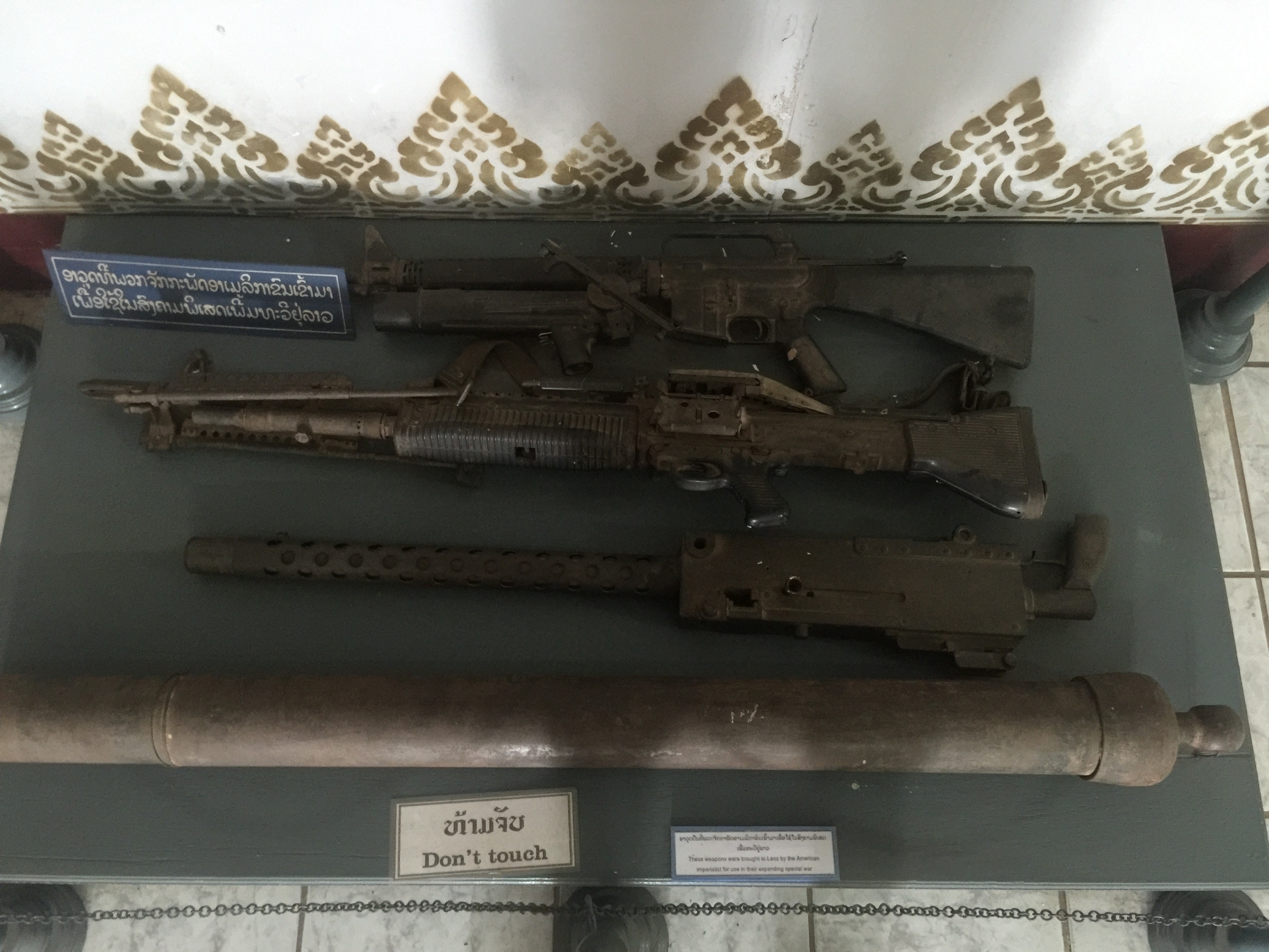 The caption below is “These weapons were brought to Laos by the American imperialist for use in their expanding special war.”