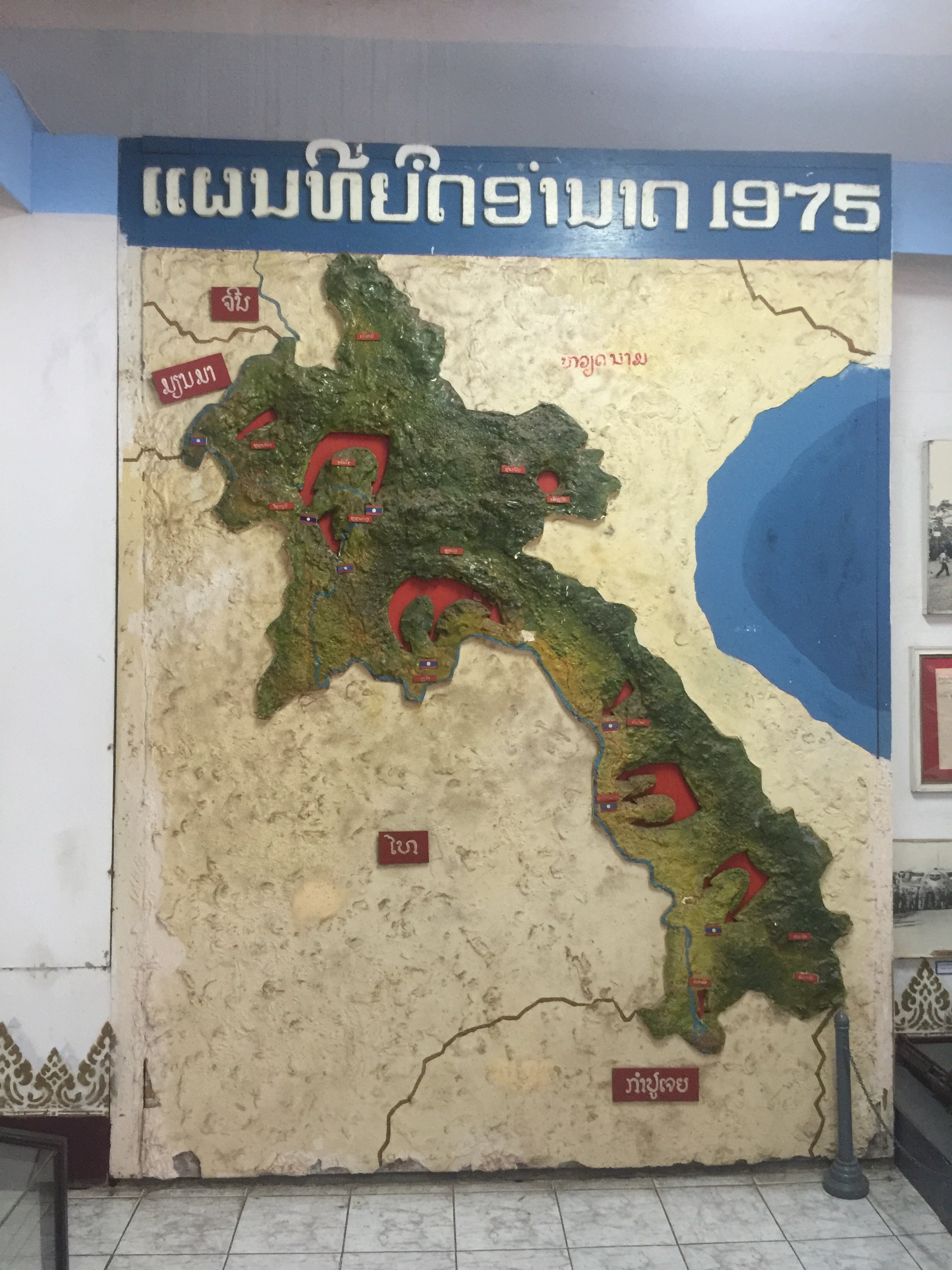 This shows the routes of the final battles of the Laos war that the Panthet Lao revolutionary forces won in 1975.