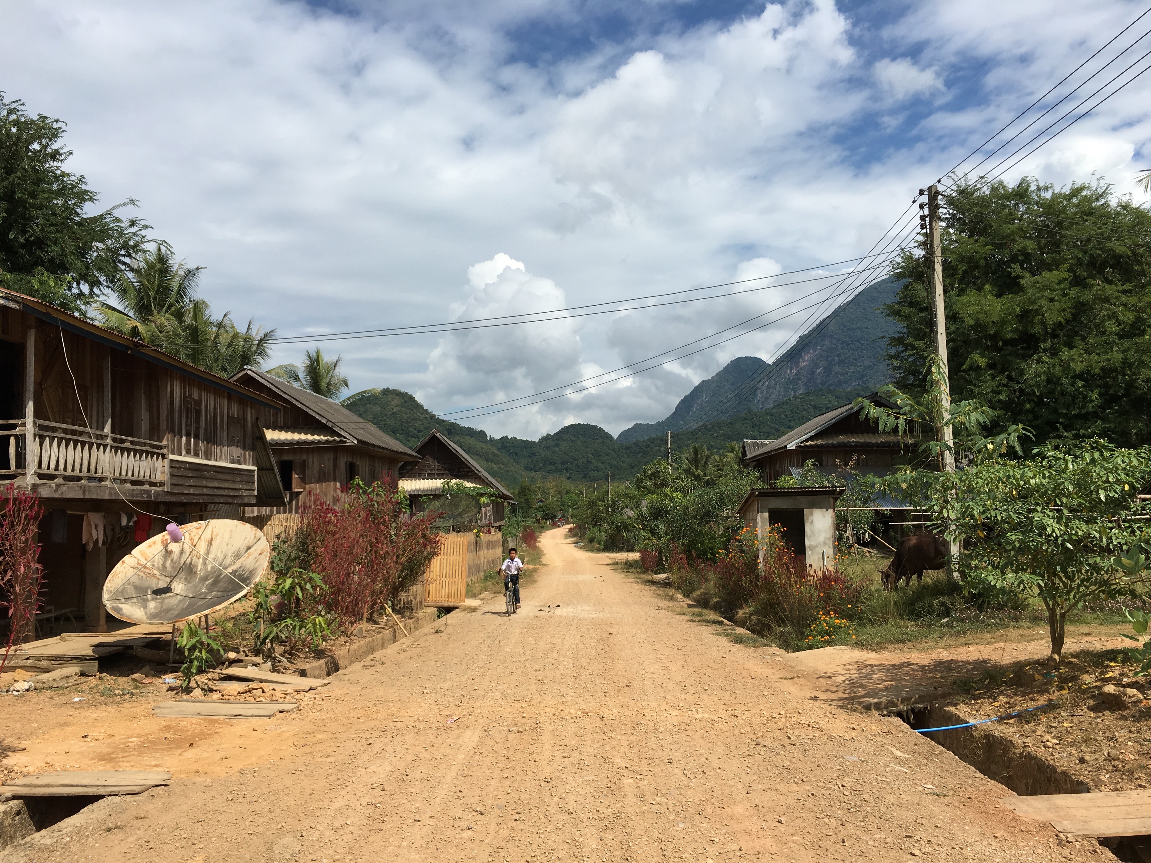 I avoided these restaurants and ate in a very simple place that had only Laotian people in it. I wouldn’t have done this at the beginning of the trip. I’m getting more brave (stupid?) as time goes on. I had ginger chicken with rice, soup, and Lao beer. It cost probably about $5. It wasn’t very memorable but I liked the simple ambience.